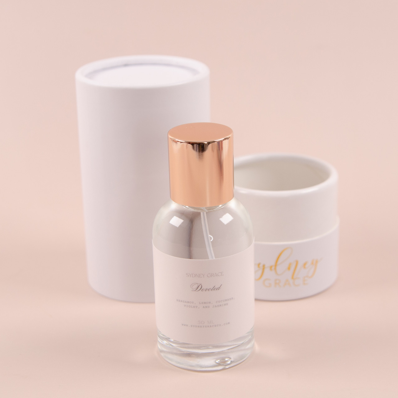 Devoted is a fresh fragrance with scent notes of bergamot, lemon, cucumber, violet, and jasmine.