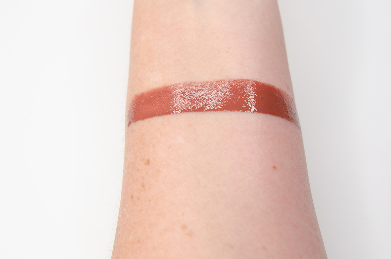 Great texture, great color saturation, smells like baby oil but I don't mind. Its not super sheer so you can wear it on its own.