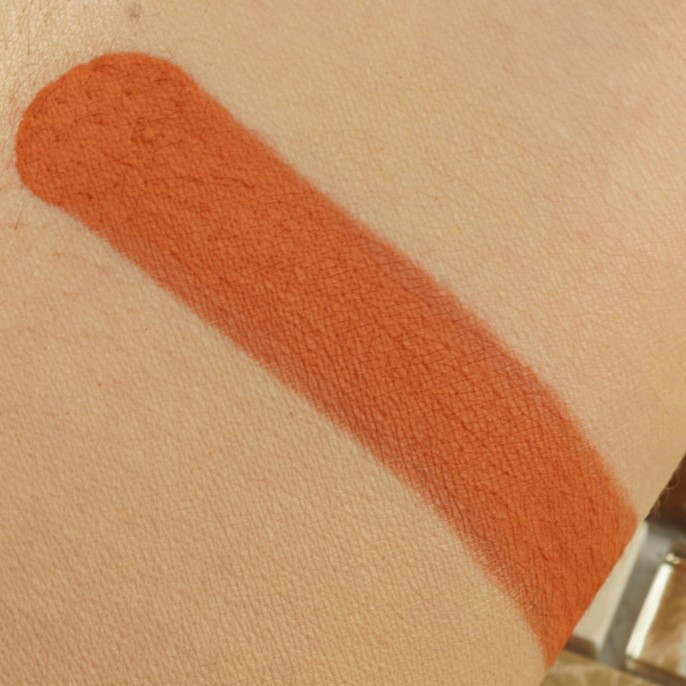 I think this color is more of a cayenne pepper shade than a true orange. I used it in my crease to warm up Totally Worth It on the lid. It's a buttery formula with staying power.