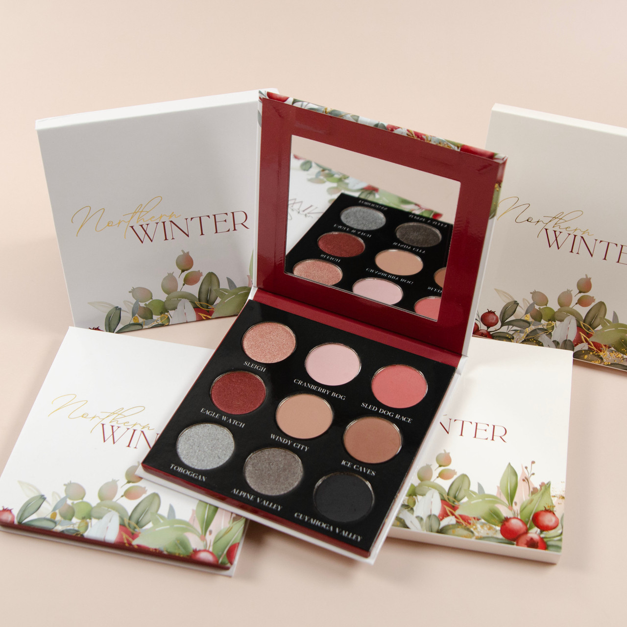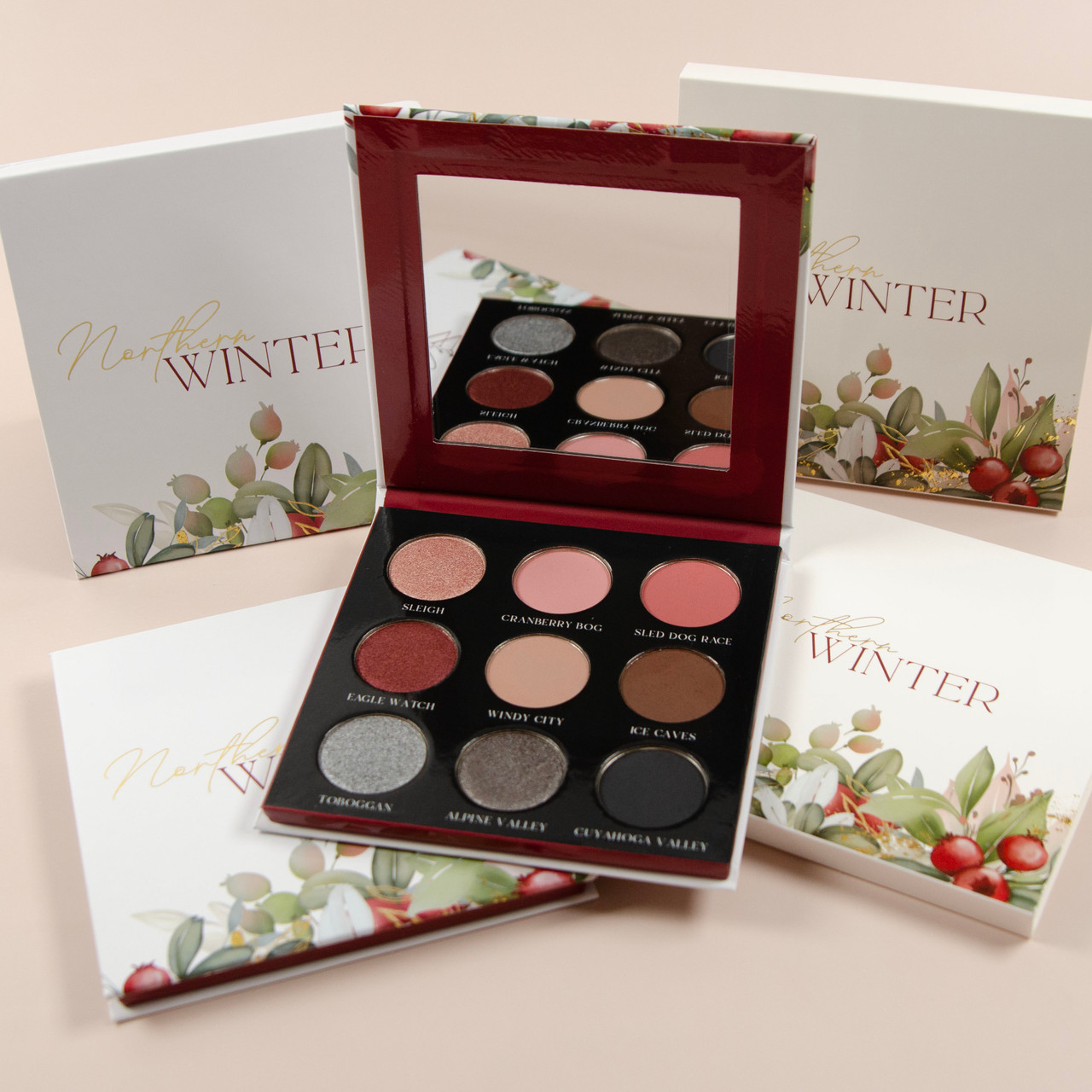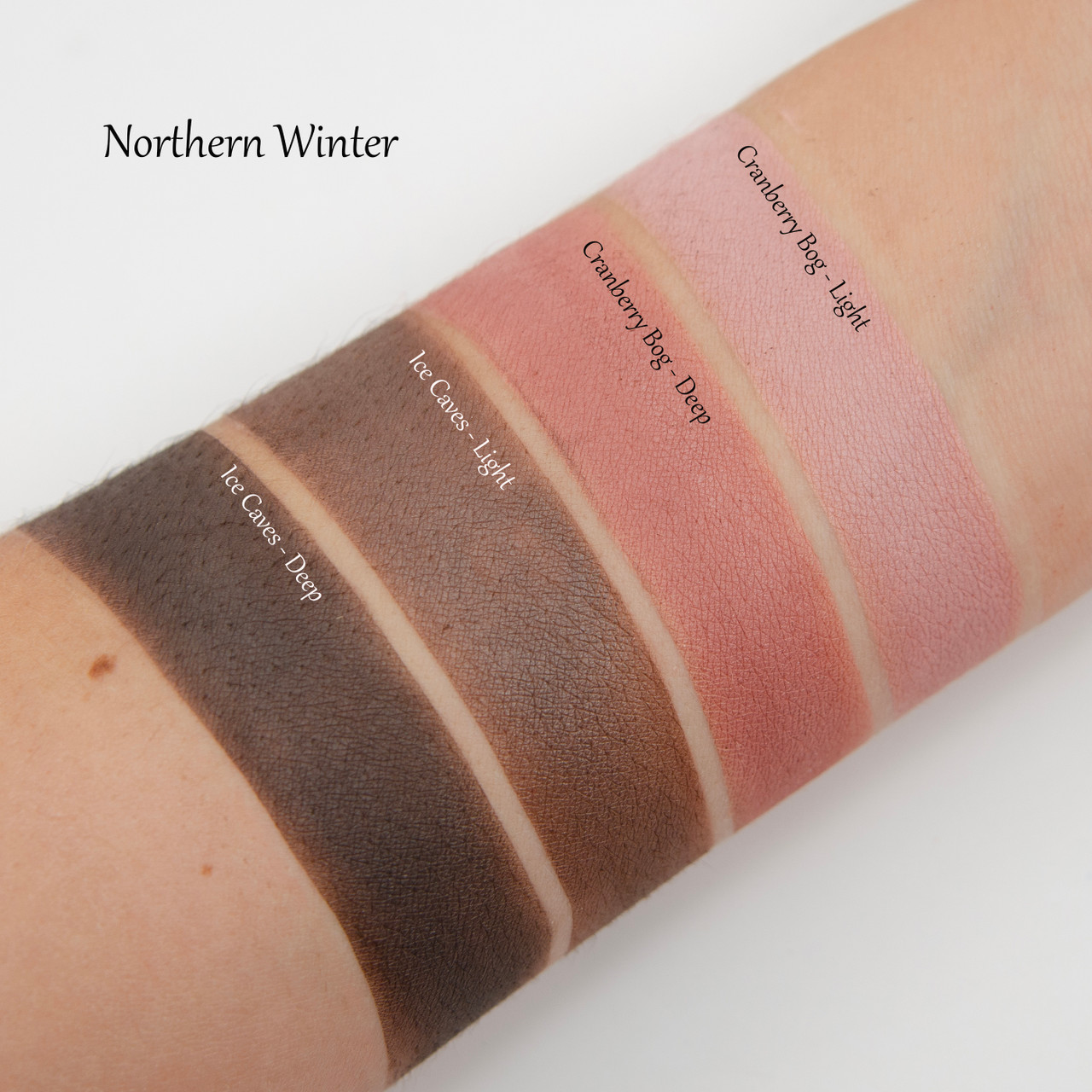 Northern Winter is inspired by the colors, activities, and places you might find in the Northern United States. Beautiful pinks, reds, and silvers make this 9 pan palette perfect for winter, but also very wearable all year long. Available in both a Deep and Light version to compliment a wide variety of skin tones.