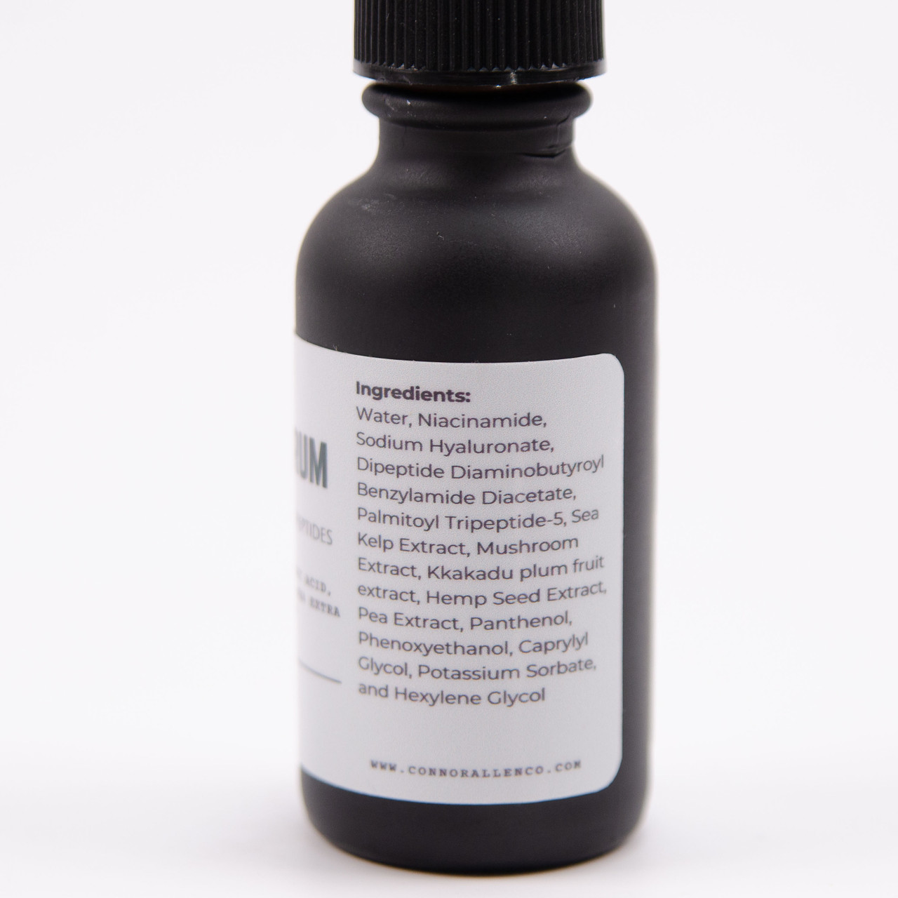 Ingredients: Water, Niacinamide, Sodium Hyaluronate, Dipeptide Diaminobutyroyl Benzylamide Diacetate, Palmitoyl Tripeptide-5, Sea Kelp Extract, Mushroom Extract, Kkakadu plum fruit extract, Hemp Seed Extract, Pea Extract, Panthenol, Phenoxyethanol, Caprylyl Glycol, Potassium Sorbate, and Hexylene Glycol