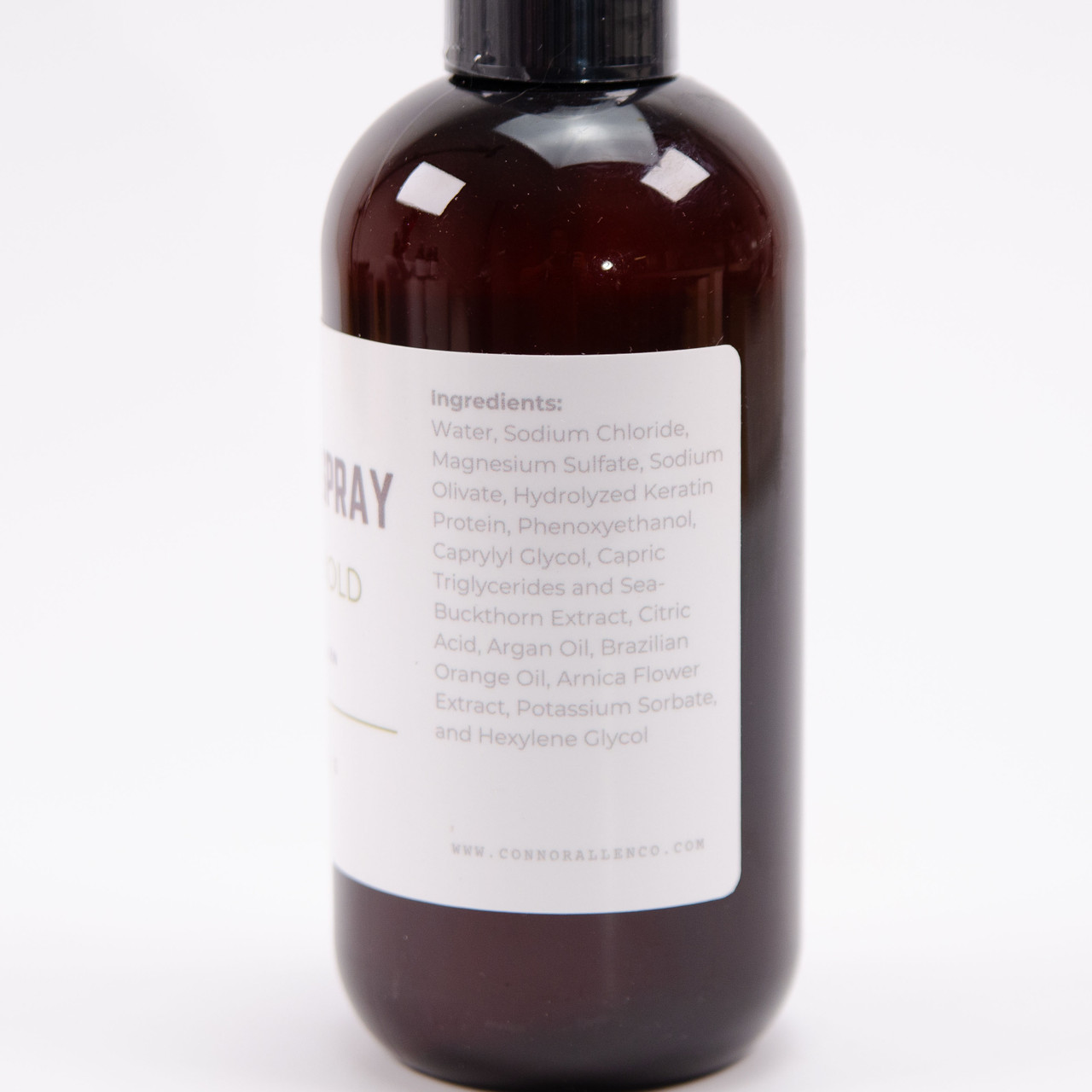 Connor Allen Sea Salt Spray helps remove toxins from your scalp to promote healthy hair growth while also adding texture and volume to your hair and enhancing curls. Sea Salt spray is a great, quick way to create beachy waves and an easy, no hassle style. Lightly scented with fragrance notes of Cedarwood and Orange.