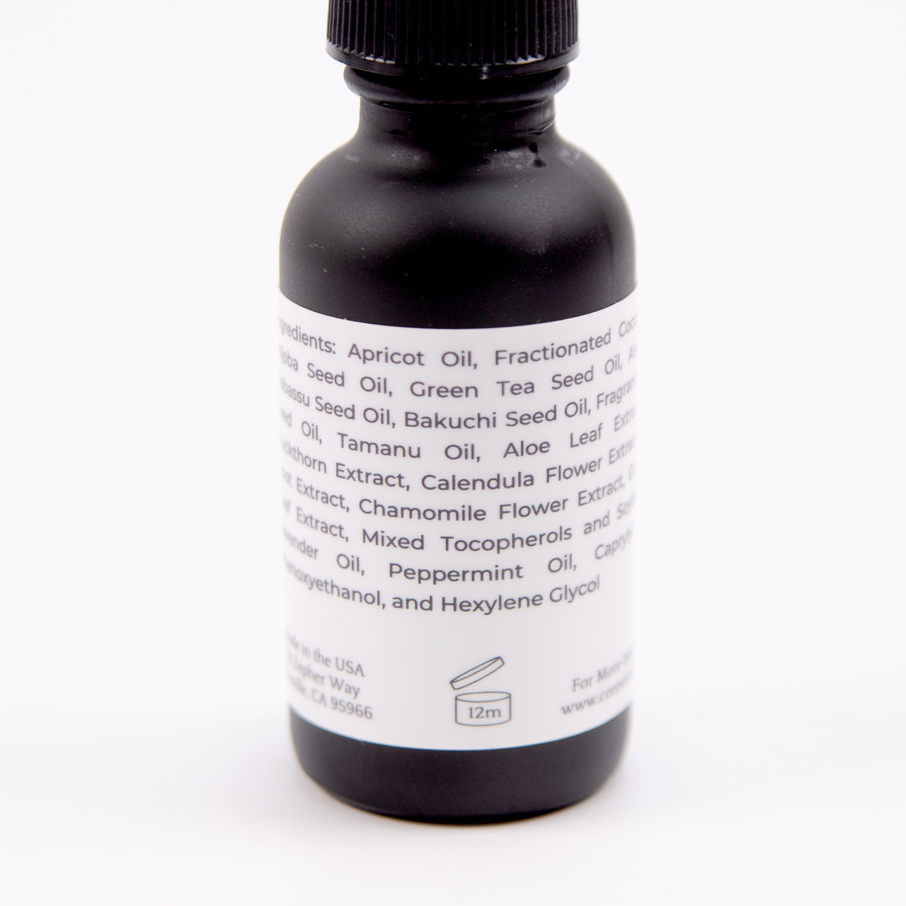 Prunus Armeniaca (Apricot) Kernel Oil, Caprylic/CapricTriglycerides, Simmondsia Chinensis (Jojoba) Seed Oil, Capric Triglycerides and Camellia Sinensis (Green Tea) Leaf Extract, Argania Spinosa (Argan) Oil, Orbignya Oleifera (Babassu) Seed Oil, Psoralea Corylifolia (Bakuchi) Seed Oil, Fragrance, Prunus Domestica (Plum) Seed Oil, Calophyllum Inophyllum (Tamanu) Oil, Simmondsia Chinensis (Jojoba) Seed Oil, Caprylic/Capric Triglyceride and Aloe Barbadensis Leaf Extract, Capric Triglycerides and Hippophae Rhamnoides (Sea-Buckthorn) Fruit Extract, Caprylic Triglyceride and Calendula Officinalis (Calendula) Flower Extract, Caprylic/Capric Triglyceride and Daucus Carota (Carrot) Sativa Root Extract, Caprylic Triglyceride and Chamomilla Rectita (Chamomile) Flower Extract, Capric Triglycerides and Camellia Sinensis (Green Tea) Leaf Extract, Mixed Tocopherols and Soybean (Glycine Soja) Oil, Lavandula Angustifolia (Lavender) Oil, Mentha Piperita (Peppermint) Oil, Caprylyl Glycol, Phenoxyethanol, and Hexylene Glycol