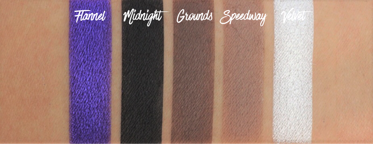 Ingredients: Silk Mica (Mica (77019), Boron Nitride, L-Lysine Mica (Mica 77019 and Lauroyl Lysine), Carnauba Mica (Mica 77019 and Carnauba Wax), Magnesium Stearate, Magnesium Myristate, Zinc Stearate ((+/- Mica (77019), Fractionated Coconut Oil (Caprylic/Capric Triglyceride), Titanium Dioxide (CI 77891), Chromium Hydroxide Green (CI77289), Chromium Green (CI77288), Iron Oxide (CI 77499, 77491, 77492), Tin Oxide (CI 778161), Manganese Violet (CI 77742), Ferric Ferrocyanide (CI 77510), Ultramarines (77007), Silica, Synthetic Fluorphlogopite, Zinc (CI 77947), Bronze and Copper Powder (CI 77400), Nylon 12, Carmine (75470), Aluminum (77000) Phenoxyethanol, Caprylyl Glycol, Potassium Sorbate, and Hexylene Glycol